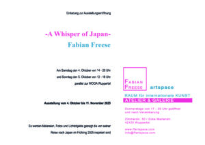 Es werden Malereien, Fotos und Lichtobjekte gezeigt die von seiner Reise nach Japan im Frühling 2025 inspiriert sind.