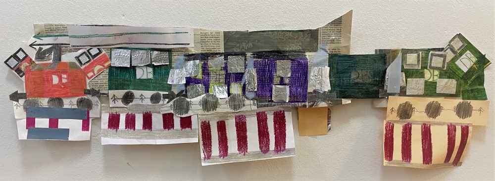 „Zug mit Oberleitung und Schienen“