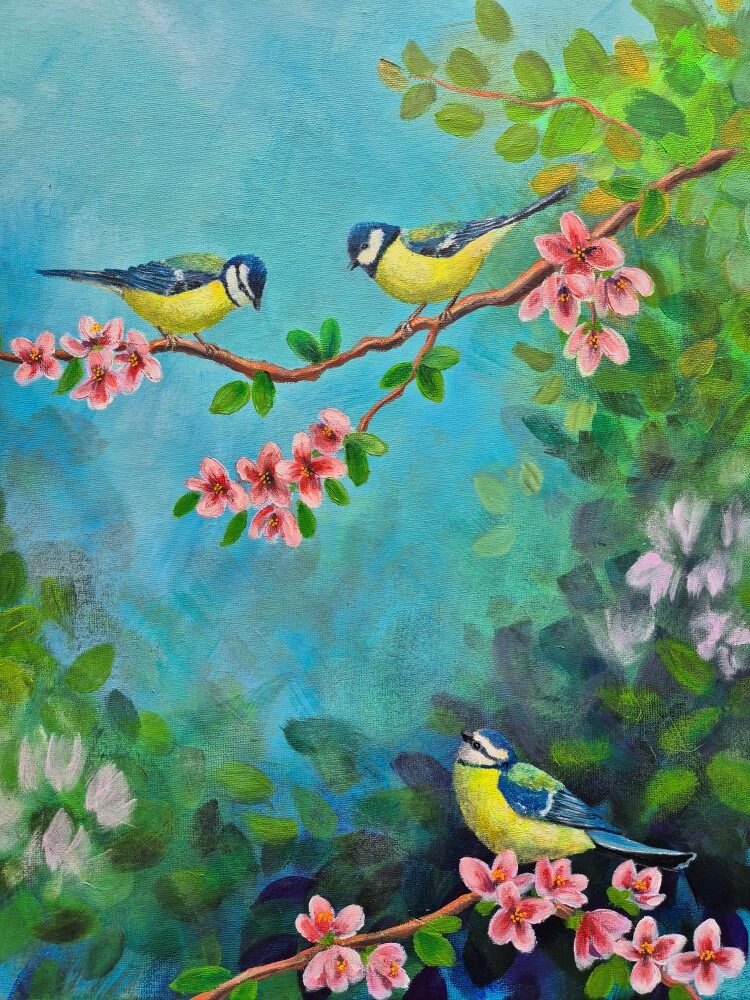 Vögel im Blütenbaum